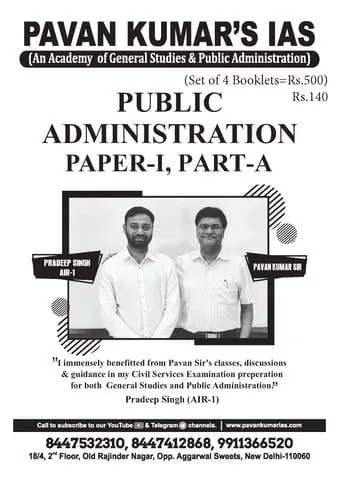 (Set of 4 Booklets) Public Administration Optional Paper 1 & 2 Printed Notes - Pavan Kumar's IAS - [B/W PRINTOUT]