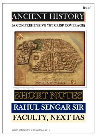 Ancient History Short Notes - Rahul Sengar - Next IAS - [B/W PRINTOUT]